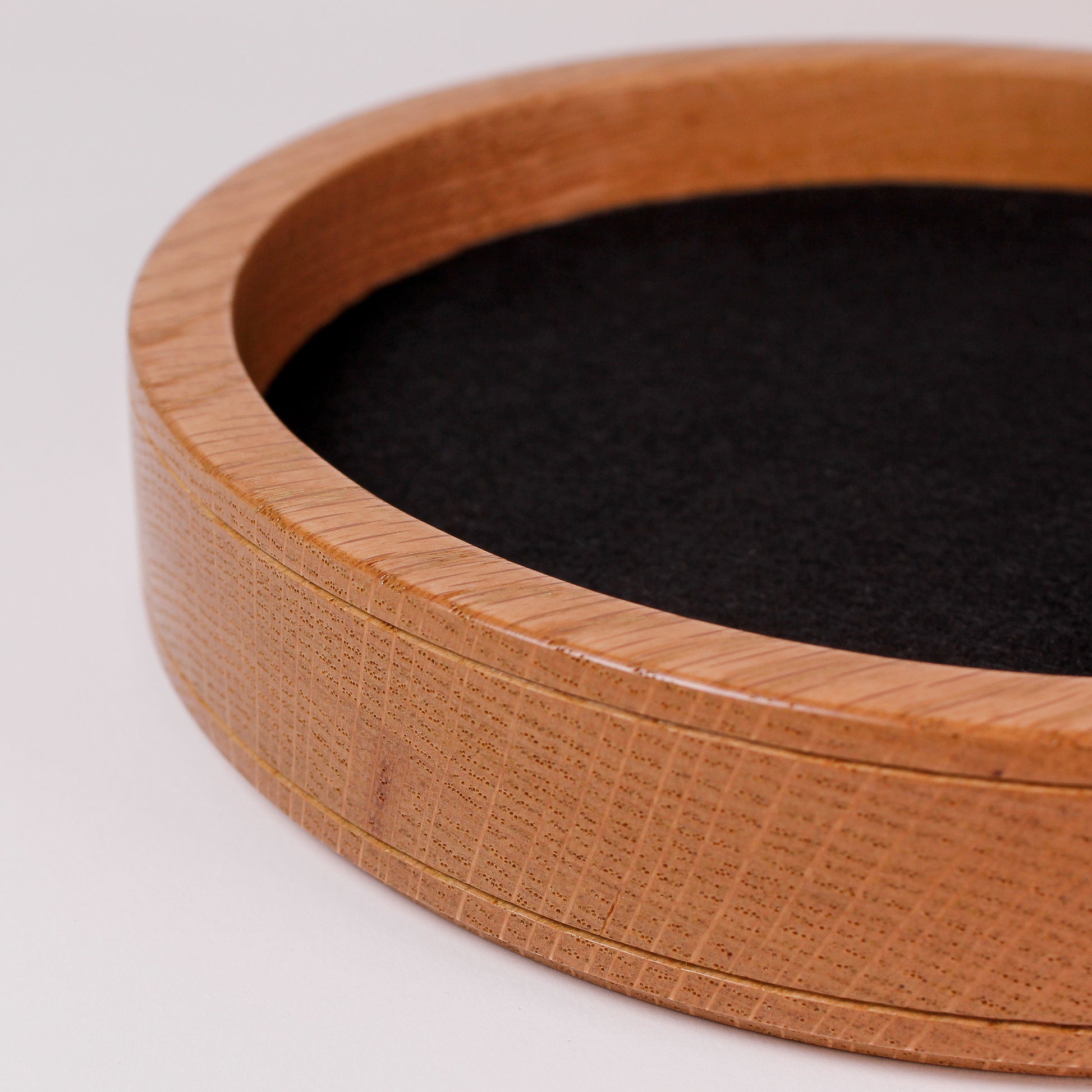 The Adventurers Token Dice Tray is a handcrafted wooden dice tray designed for tabletop RPGs, heroes, and storytellers. Available in Maple, Oak, or Walnut, and paired with your choice of felt, leather, or dragon scale (vegan leather) inlays, it’s built to bring lore and beauty to every roll.